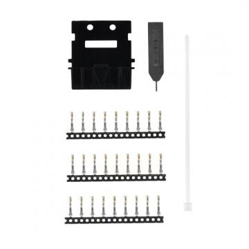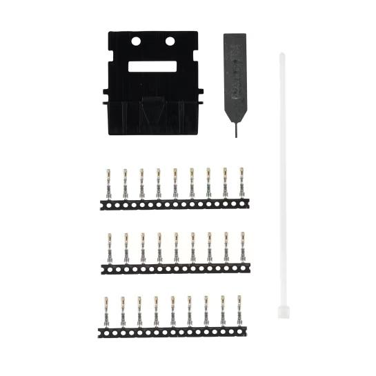 PMLN5072A - Rear Mobile Connector Kit to zestaw do mobilnych radiostacji MOTOTRBO. Zawiera obudowę złącza, 1 opaskę kablową, 27 pinów lutowniczych/zaciskowych i narzędzie do usuwania pinów.
